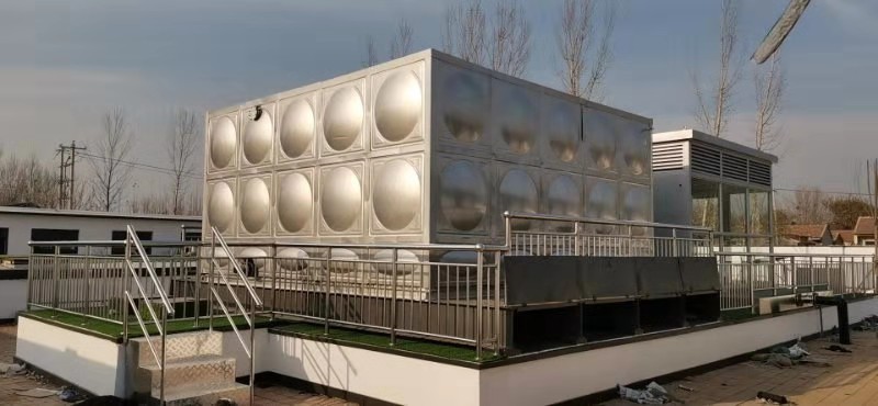 河北省滄州市東光縣河畔新城裝配式不銹鋼保溫水箱已經(jīng)安裝完成,保溫為聚氨酯保溫50厚,外殼為304不銹鋼。 安裝效果如下: