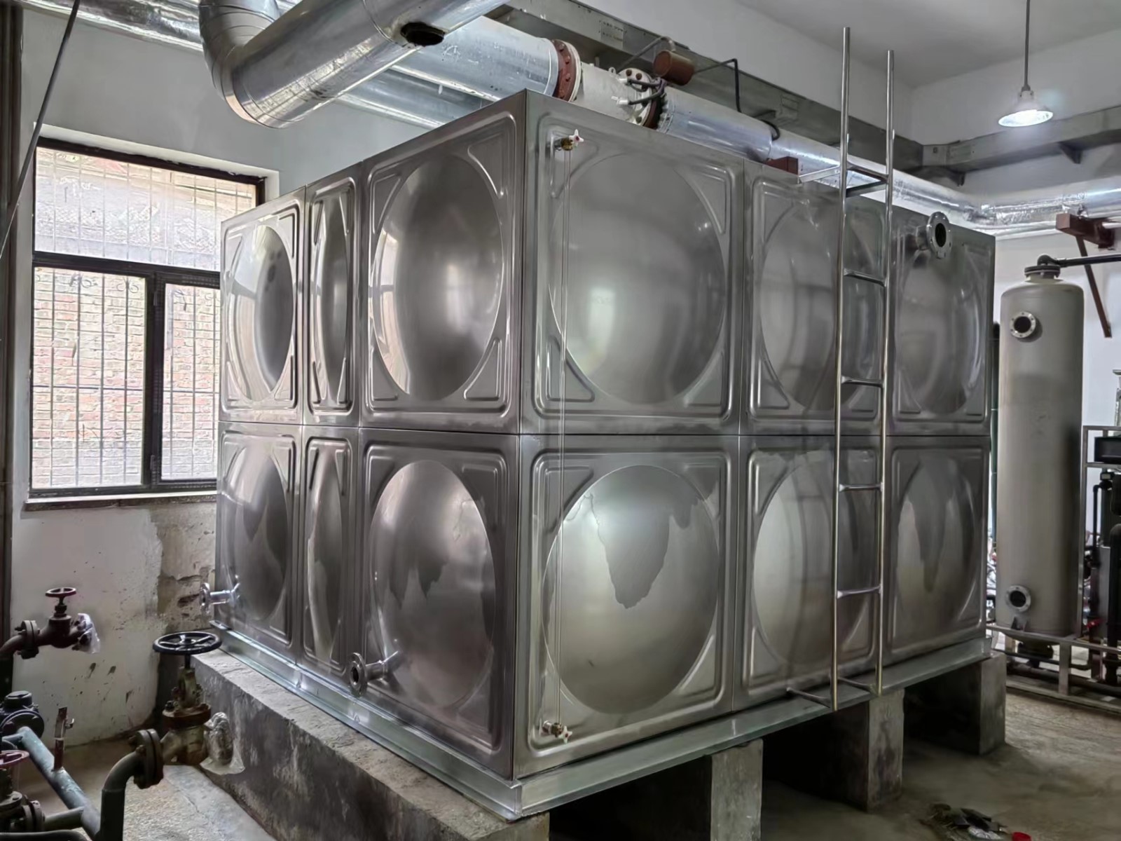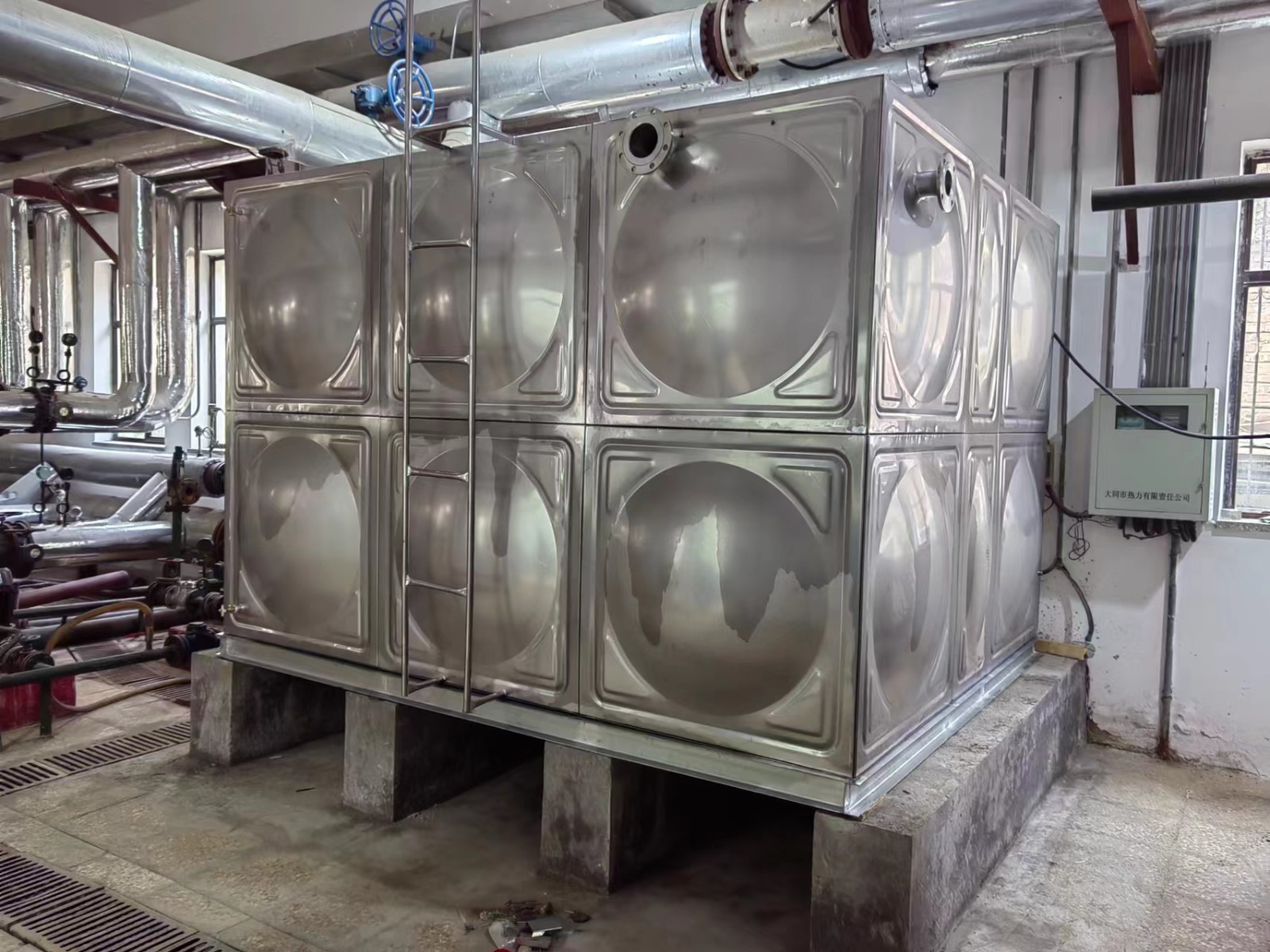 我司承接的山西省大同市銀豪嘉園換熱站更換水箱項目已安裝試水完成。不銹鋼全焊接水箱為現場組合方式,強度高、密封性好,防止水質二次污染,永不滲漏,重量輕,是普通鋼板水箱的二分之一,價格合理,外觀整潔、光亮、美觀、實用等特點。安裝師傅全力配合并提前安裝試水完畢。得到了客戶的高度認可,您的認可就是對我們較大的支持!